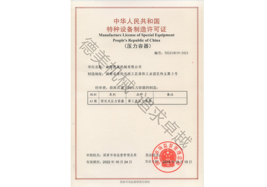 - 2020-08-29 特種設(shè)備制造許可證